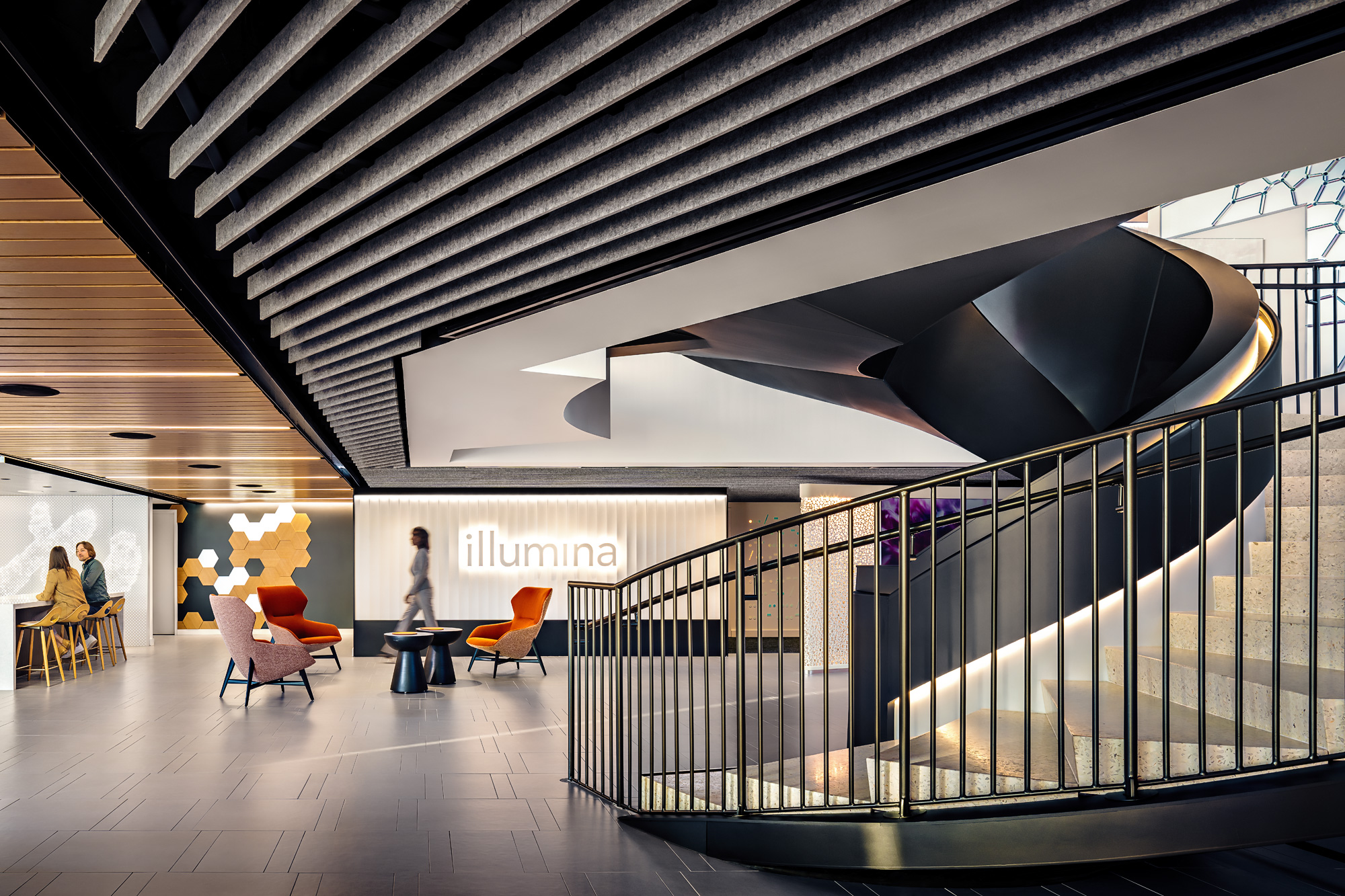 ZGF crafts a visitor’s center for Illumina, a cutting-edge genomics research company. The Executive Briefing Center focuses on storytelling and human connection as catalysts for the company’s goal of improving human health through genomics.